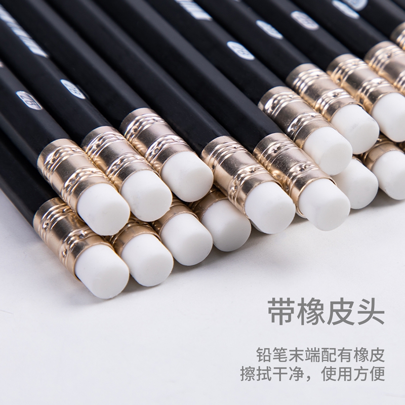 得力S955-2B_黑杆办公皮头2B铅笔(黑)(12支/盒)