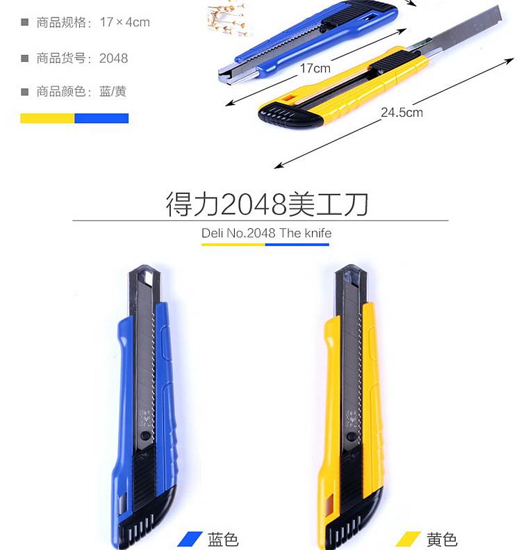 得力2048 0.6x18x100mm美工刀(黄色)(单位:把)