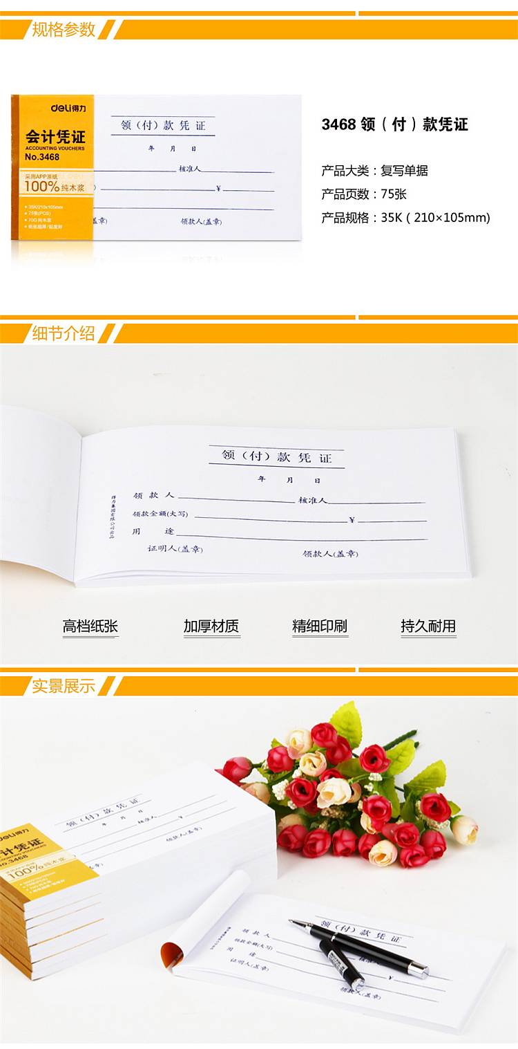 得力3468领(付)款凭证会计凭证/凭单财务单据/票据10本/包(白)(包)