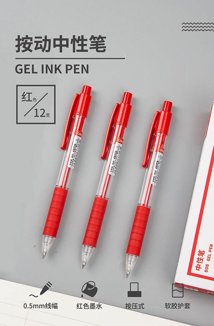 得力(deli)S06中性笔0.5mm子弹头 12支/盒 (单位:盒)红