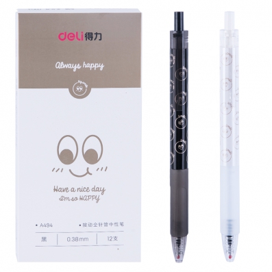 得力A494按动中性笔0.38mm全针管(黑)(单位:支)