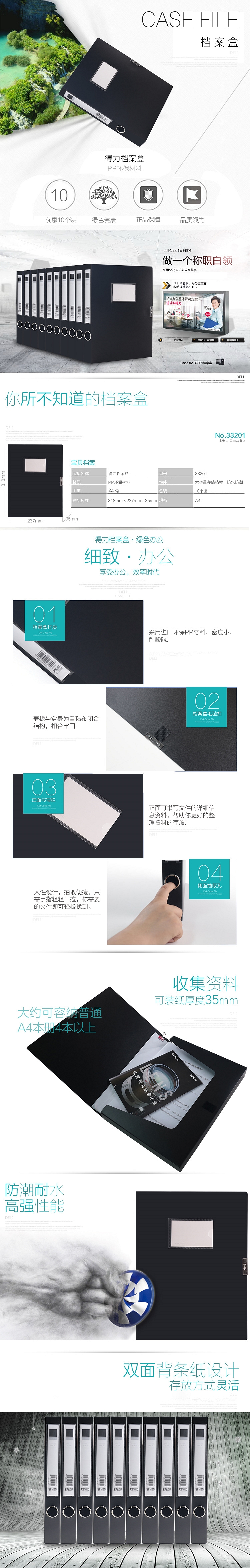 得力33201-A4/35MM档案盒(黑)(10个/盒)