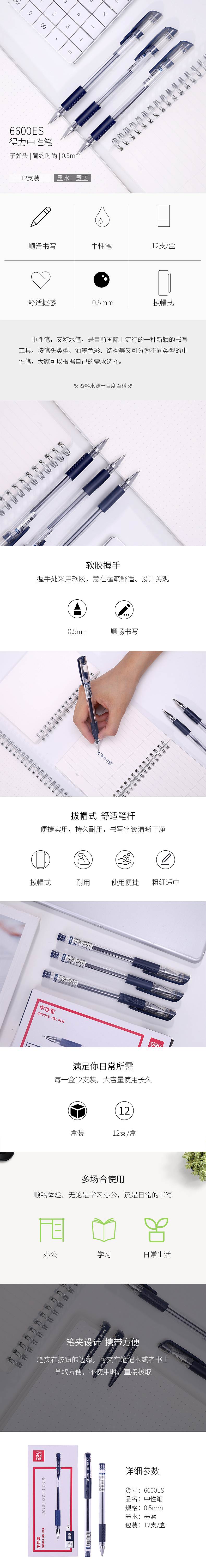 得力6600ES中性笔(墨蓝) 12支/盒 (盒)