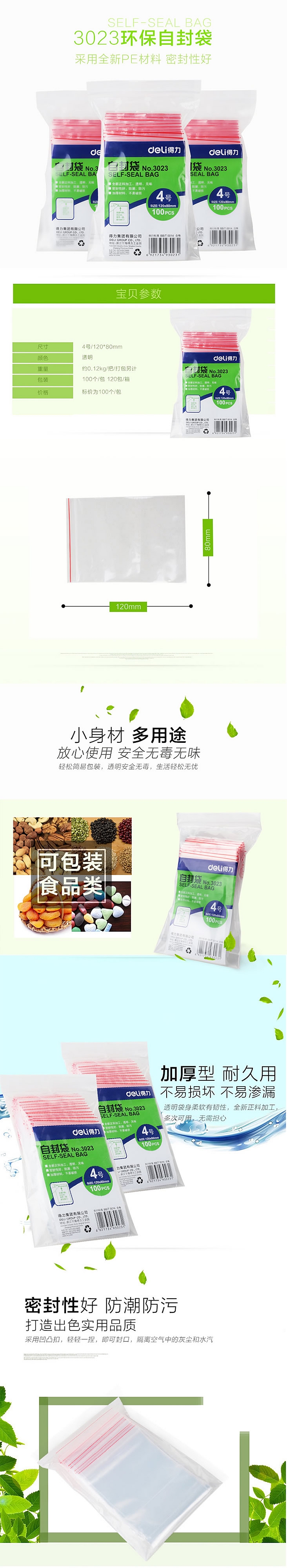 得力 3023 自封袋(透明)-4号 100个/包 (包