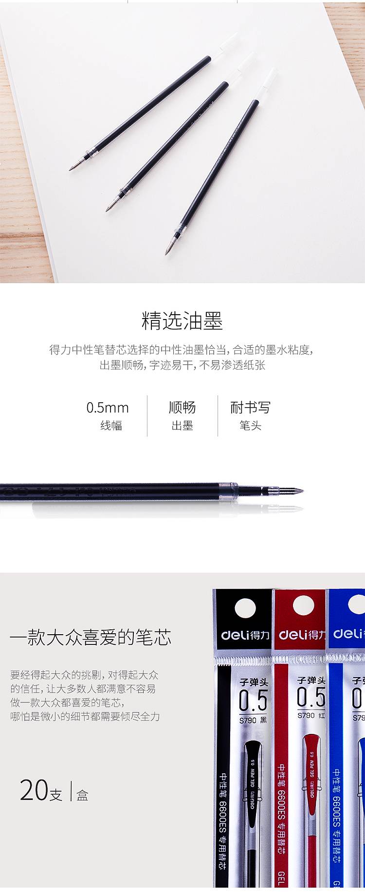 得力S790中性笔替芯0.5mm子弹头(红)(单位:支)