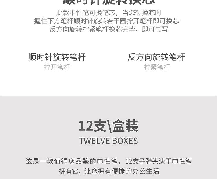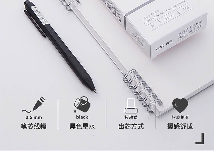 得力(deli)A109速干按动中性笔0.5mm子弹头 12支/盒(盒)黑