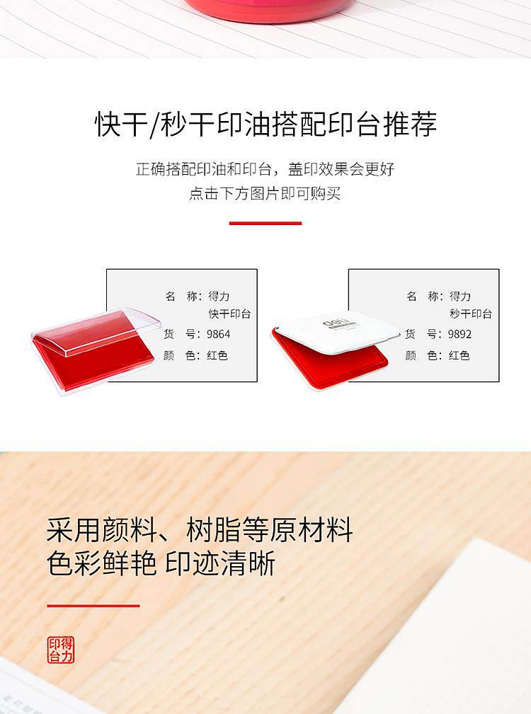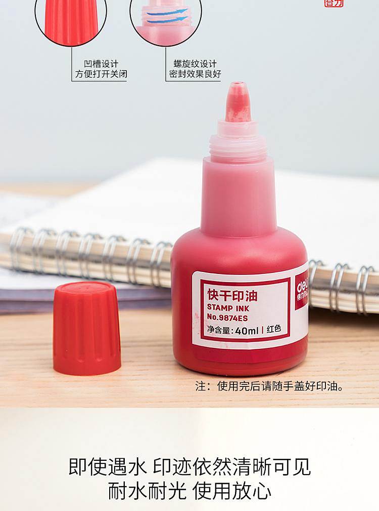 得力9874ES 40ml快干印油(单位:瓶)红 12瓶每盒