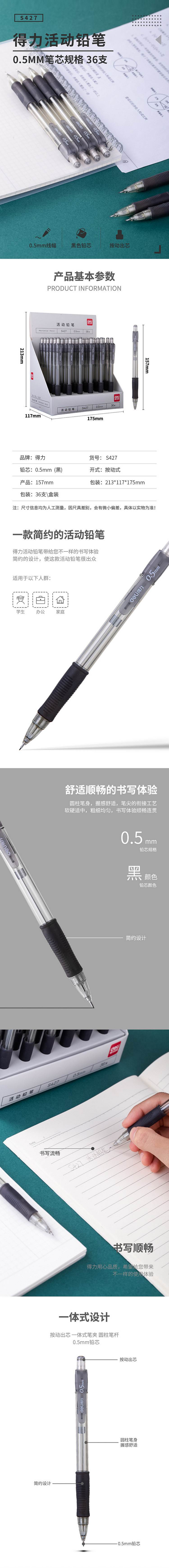 得力S427活动铅笔(黑)