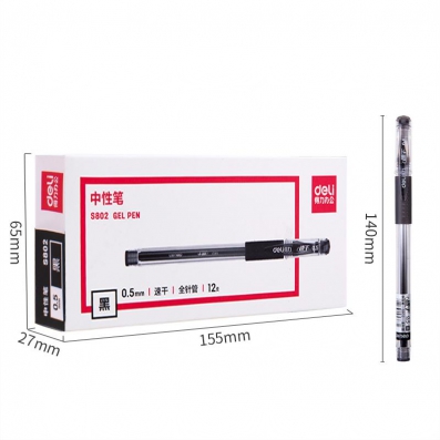 得力S802速干中性笔0.5mm全针管(黑)(单位:盒)