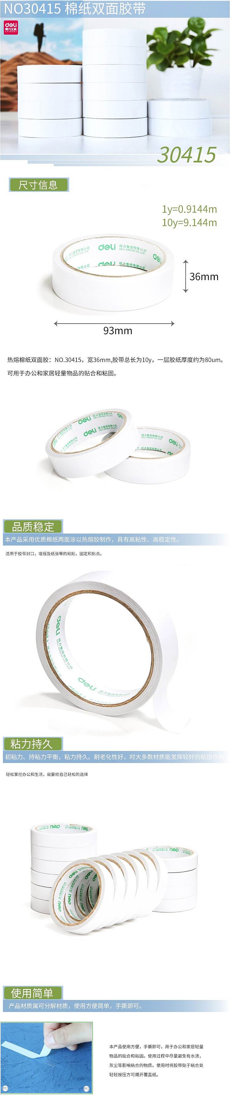 得力 30415 棉纸双面胶 36mmx10yx80u (单位:筒) 白色