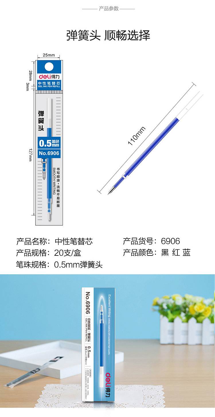 得力6906按动中性笔替芯0.5mm子弹头(墨蓝)