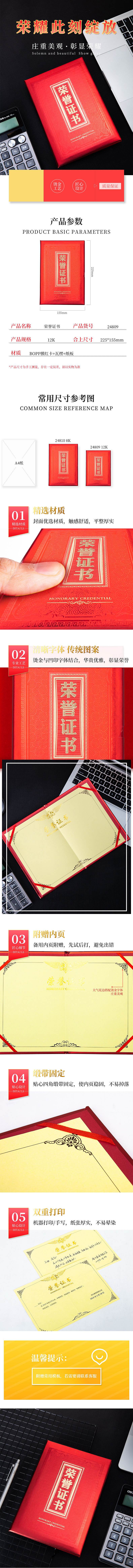 得力24809纸面荣誉证书(祥云)(红)-大12K(本)