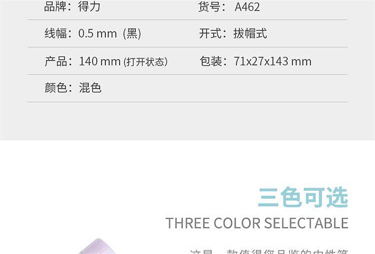得力A462学生中性笔0.5mm全针管12支/盒(黑)(盒)