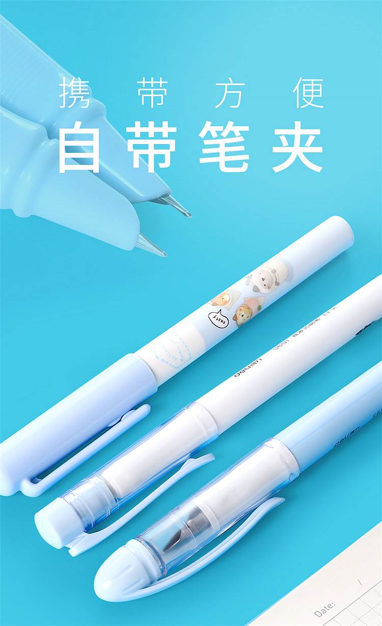 得力A922矫姿钢笔套装(可擦纯蓝)(1笔+1可擦笔+6墨囊/卡)