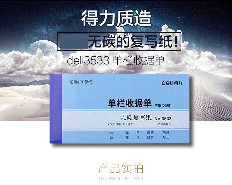 得力 3533 无碳复写单据 175x83mm (单位:本) 蓝