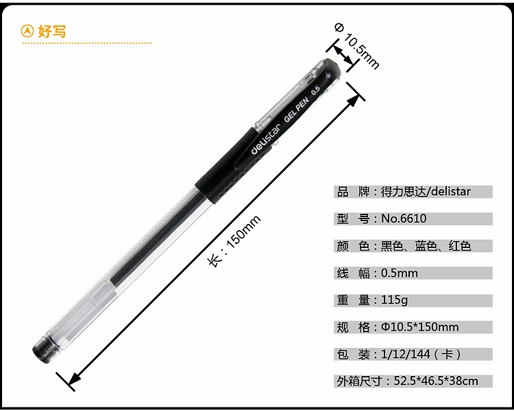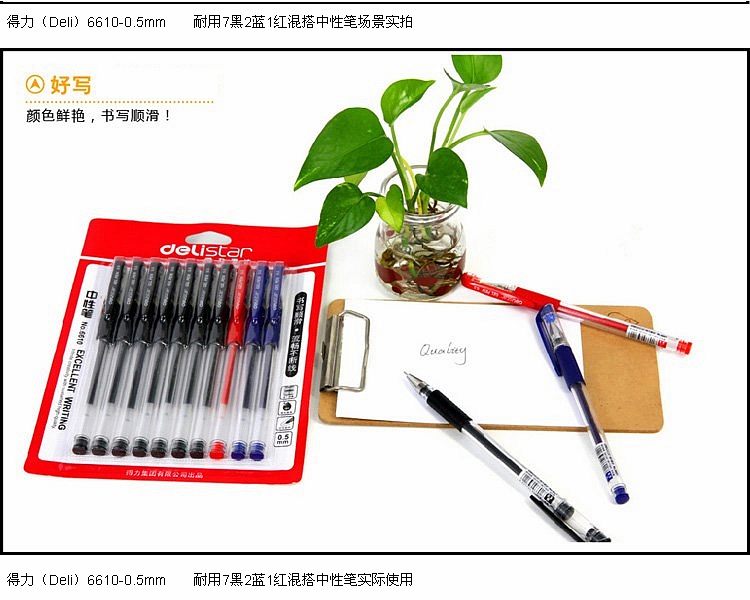 得力 6610 0.5mm中性笔 10支/卡 (单位:卡) 混色