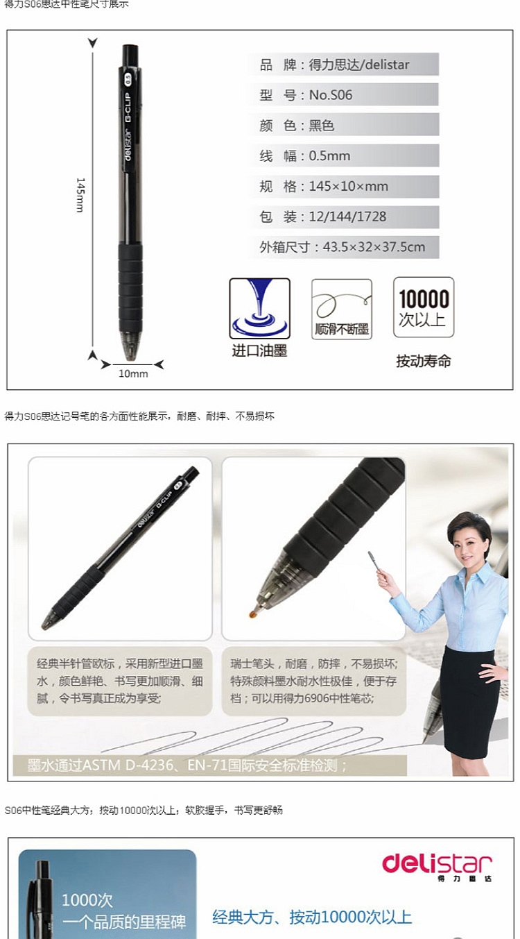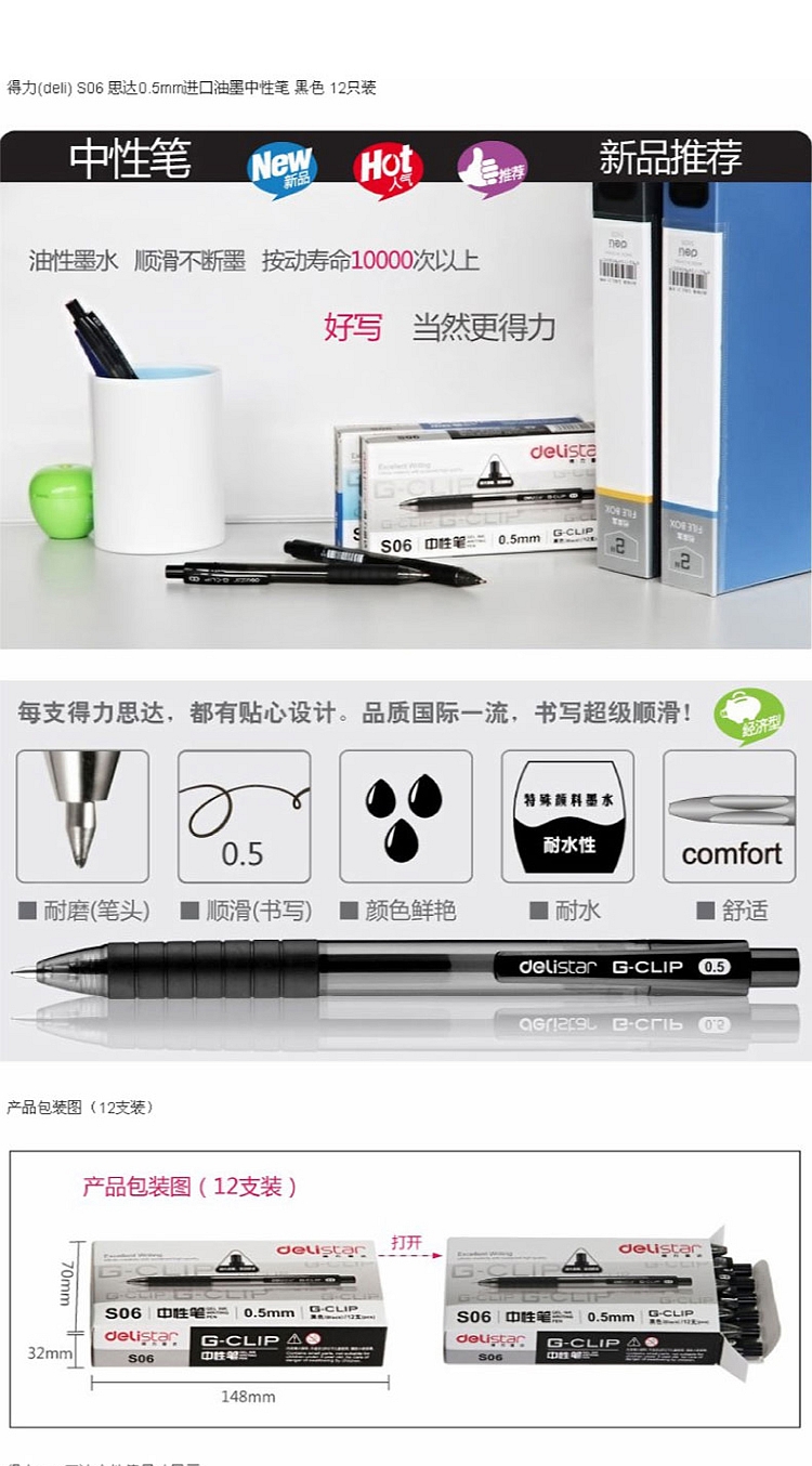得力 S06 0.5mm中性笔 12支/盒 (单位:支) 黑