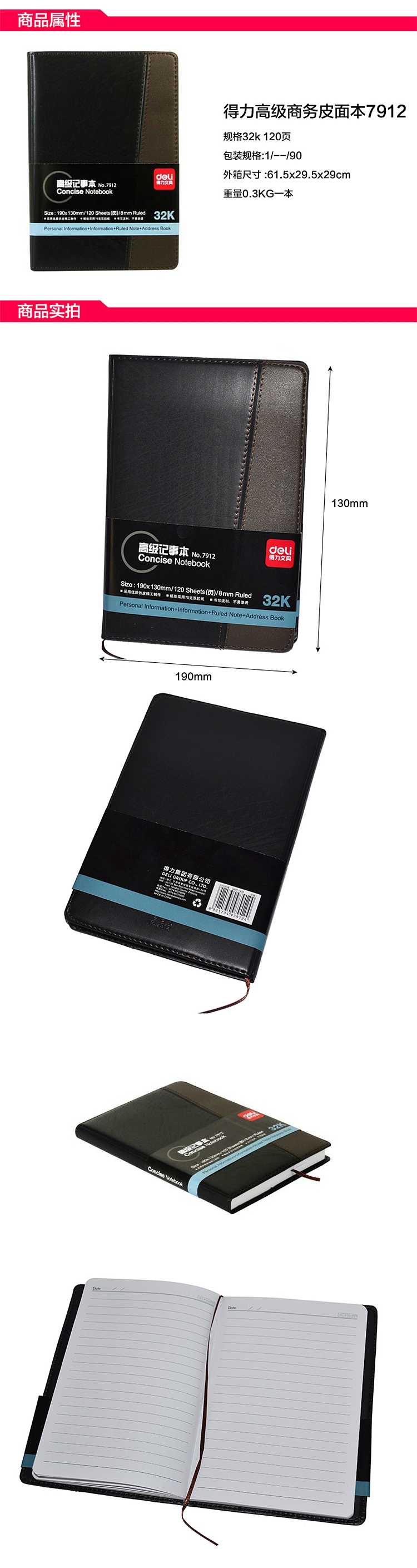 得力 7912 皮面笔记本 32K/120张 (单位:本) 黑