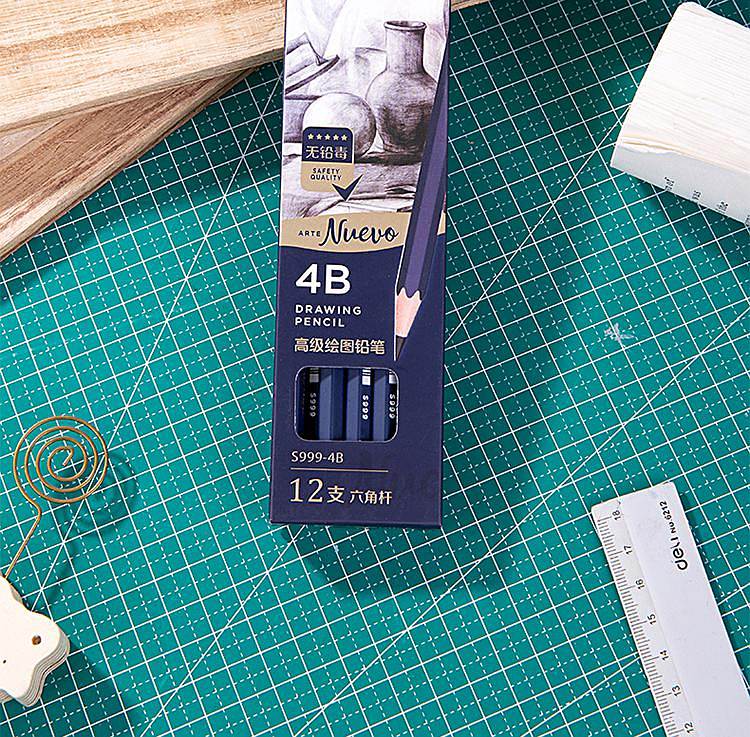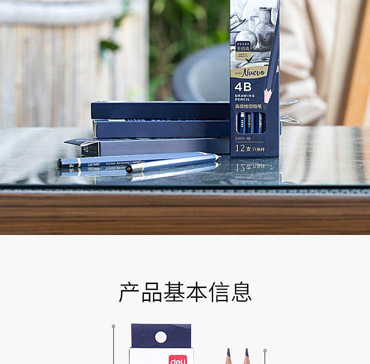 得力S999-4B_高级绘图铅笔12支彩盒装4B(蓝)(12支/盒)