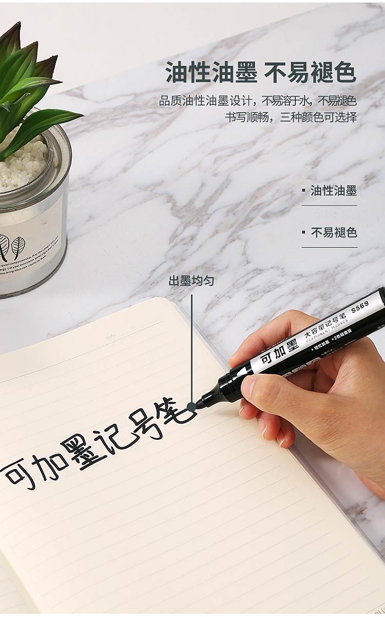 得力S569可加墨大容量记号笔(黑)(单位:支)