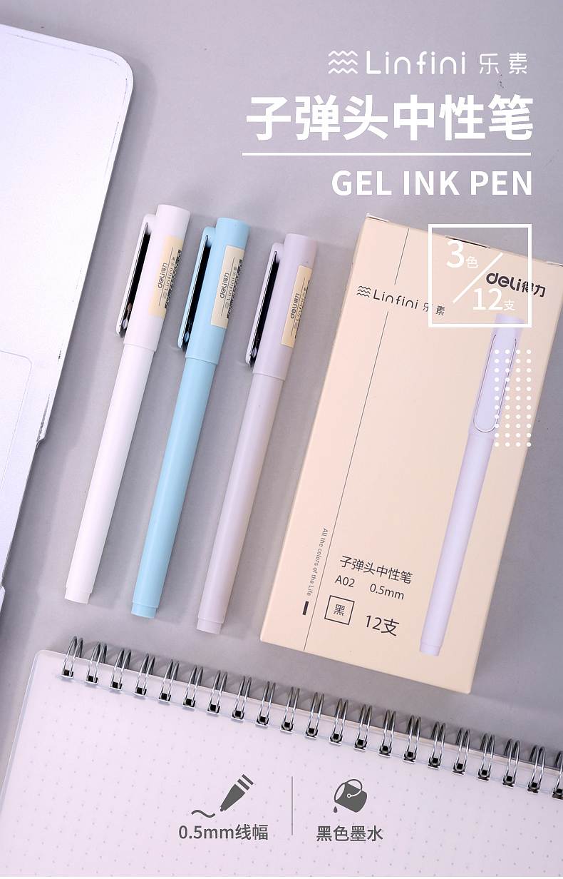 得力(deli)A02办公中性笔0.5mm子弹头(单位:支)黑色