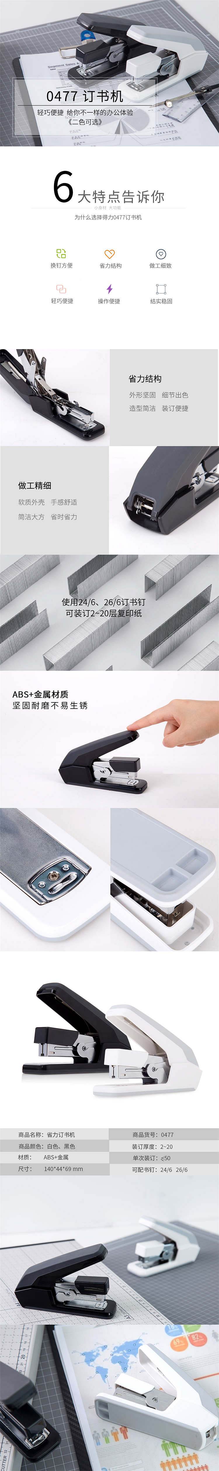得力0477省力订书机(黑)(单位:台)