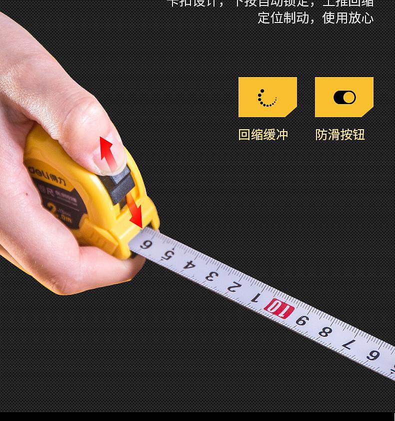 得力工具DL9075A钢卷尺(黄)(新VI)