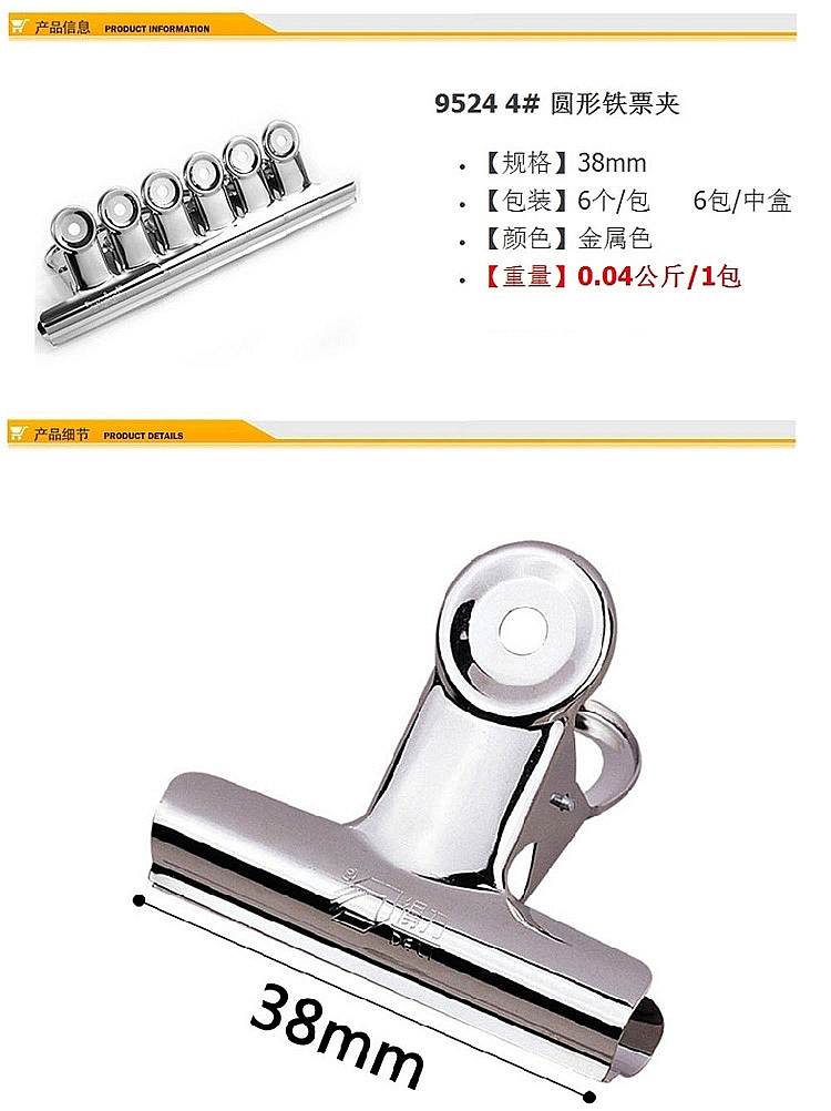 得力 9524 圆形铁票夹 38mm 6只/包 (单位:只)6个起订,需按6倍数下单,原SAP:100002553