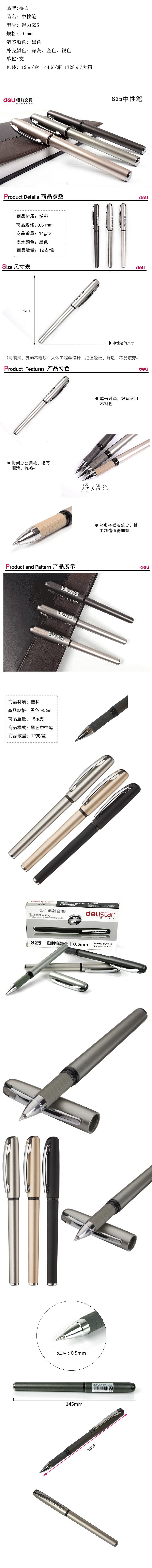 得力 S25 签字笔中性笔水笔 0.5mm 12支/盒 (单位:支) 黑色