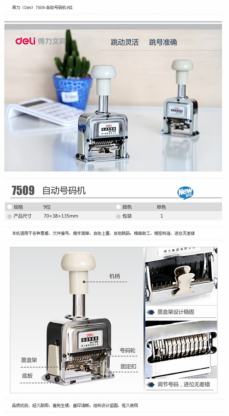 得力 7509 自动号码机 9位(digits) (单位:台) 白色