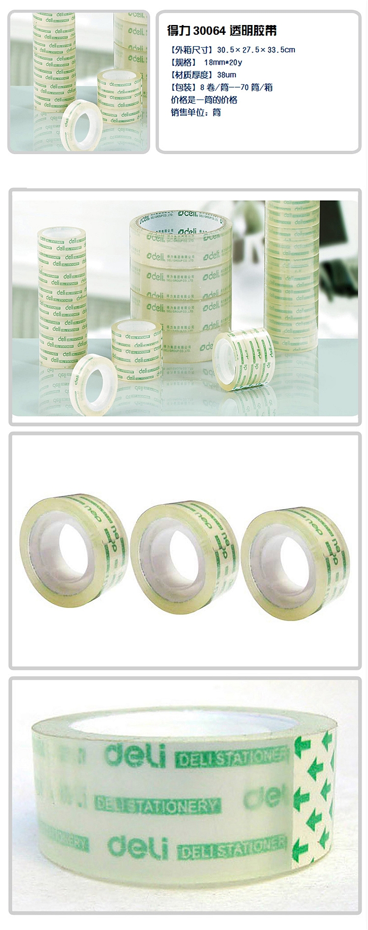 得力 30064 文具胶带 18mm*20y*38um 8卷/筒 (单位:筒)