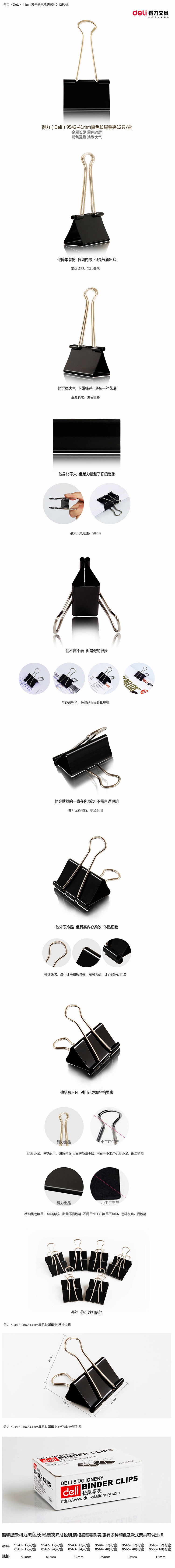 得力 9542 长尾夹 41mm 12只/筒 (单位:盒) 黑