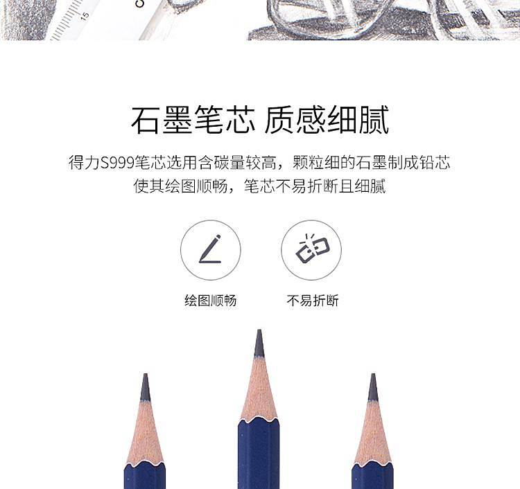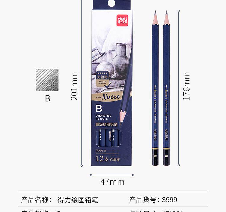 得力S999-B_高级绘图铅笔12支彩盒装B(蓝)(12支/盒)