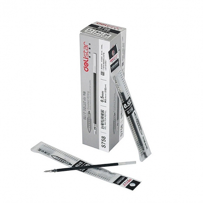 得力 S758 台笔专用笔芯 0.5mm 20支/盒(黑)(盒)
