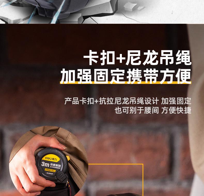 得力工具 DL9003P 尼龙覆膜钢卷尺 3mx16mm(单位:把)