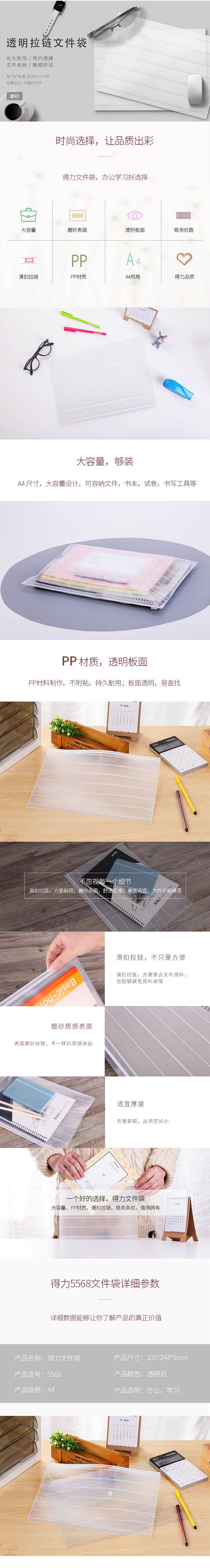 得力(deli)5568 A4透明条纹拉链袋(单位:个)透明