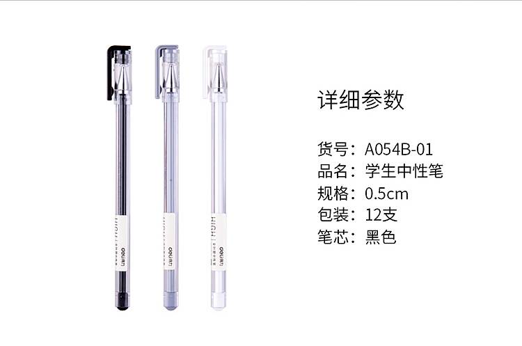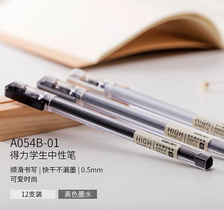 得力(deli)A054B-01中性笔0.5mm全针管(单位:支)黑 12支每盒