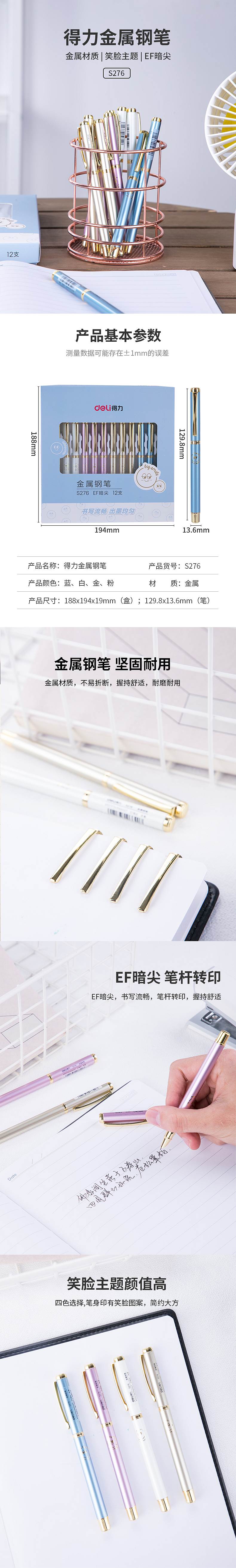 得力S276金属钢笔EF暗尖(混)(支)