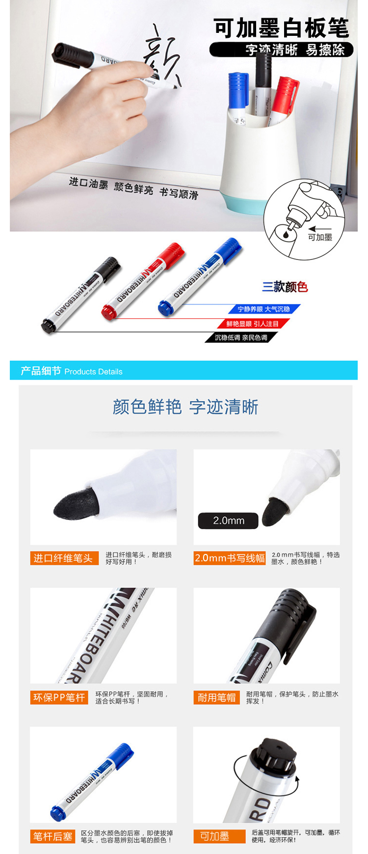 齐心 WB705 可加墨白板笔 匹配墨水M705 黑 单位:支