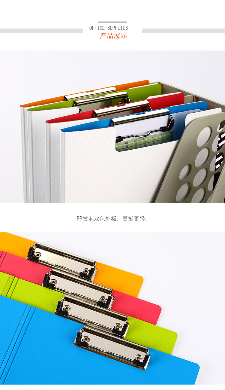 齐心 A5305 央格 双折式板夹 A4 发泡PP 蓝
