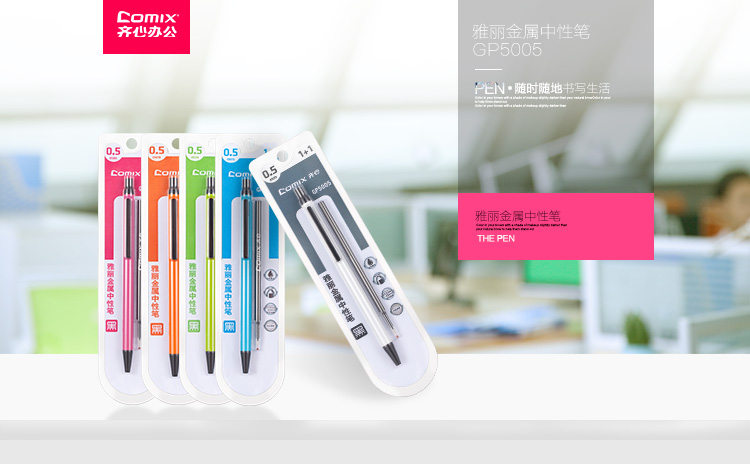 齐心 GP5005 雅丽金属中性笔 0.5mm 珍珠橙