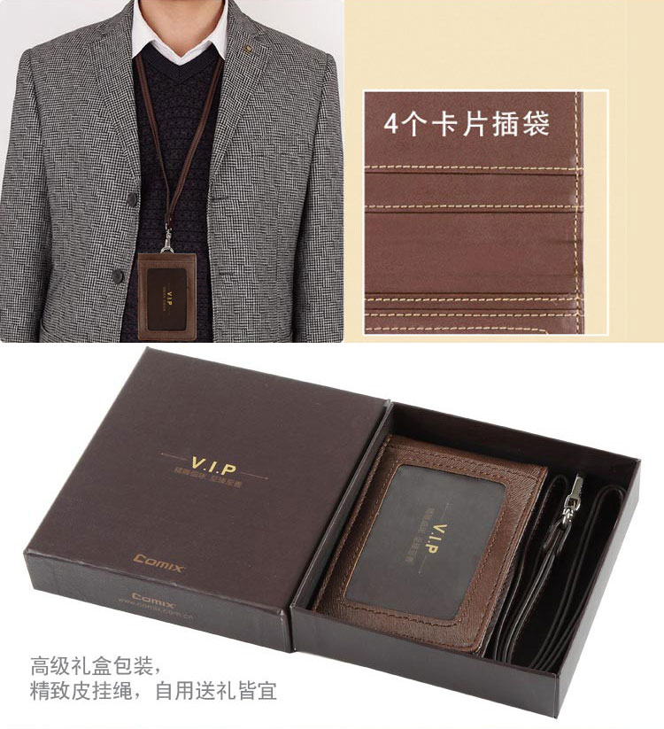齐心 A7912 VIP皮面身份识别卡套 竖式 礼盒装 黑