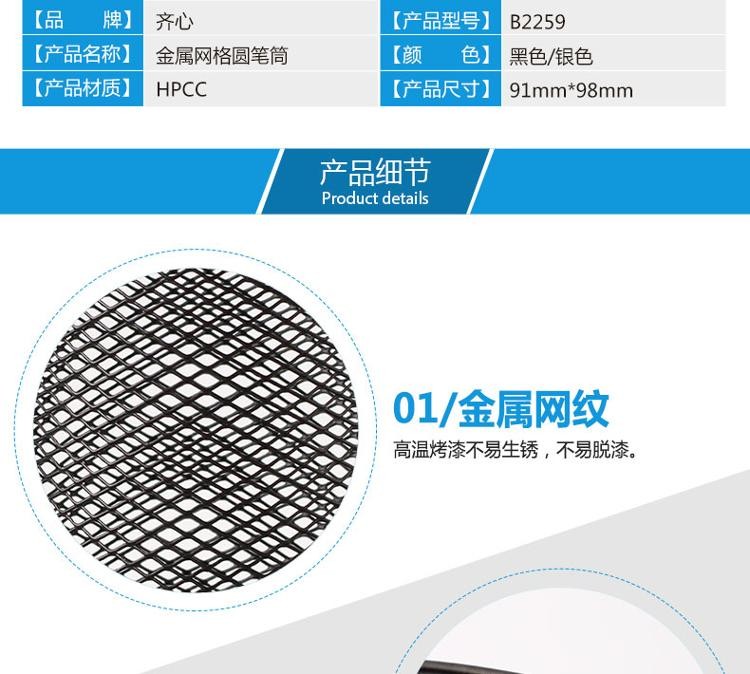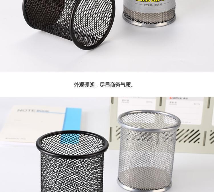 齐心 B2259 耐用铁网圆笔筒 黑(单位:个)