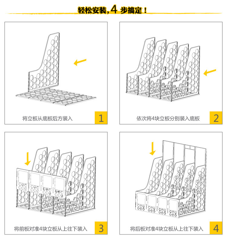 齐心 B2114 标准型资料架/文件框 四格 灰