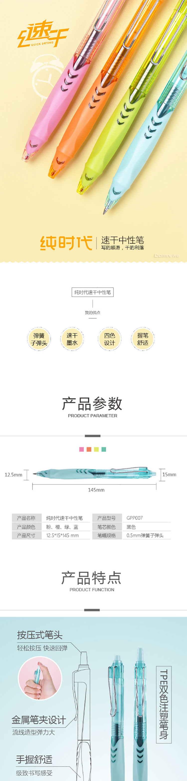 齐心 GP352 大容量中性笔 1.0mm 橙