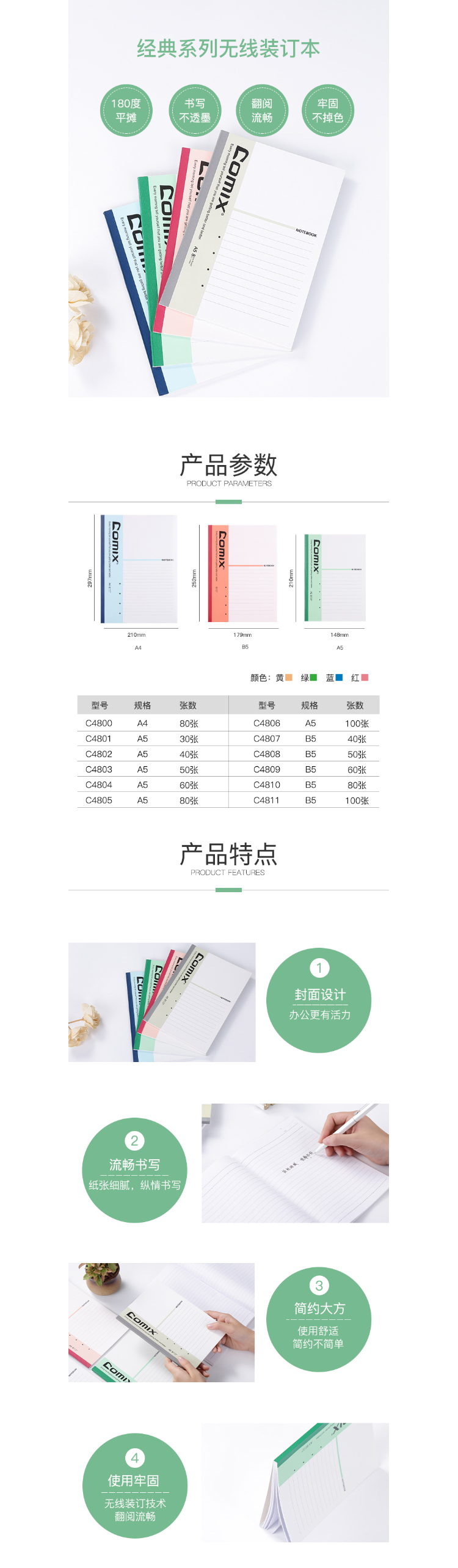 齐心 C4808 经典系列无线装订本 B5 50张 黑