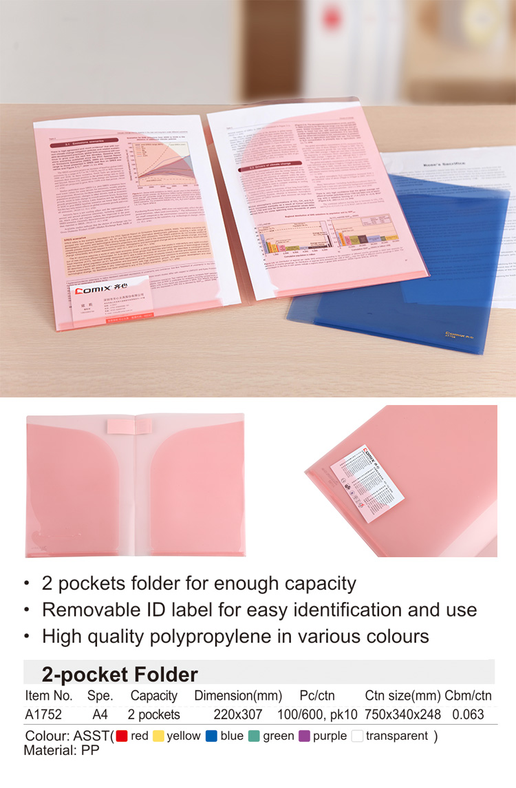 齐心外销 A1752 双袋文件套 水果色 A4 红