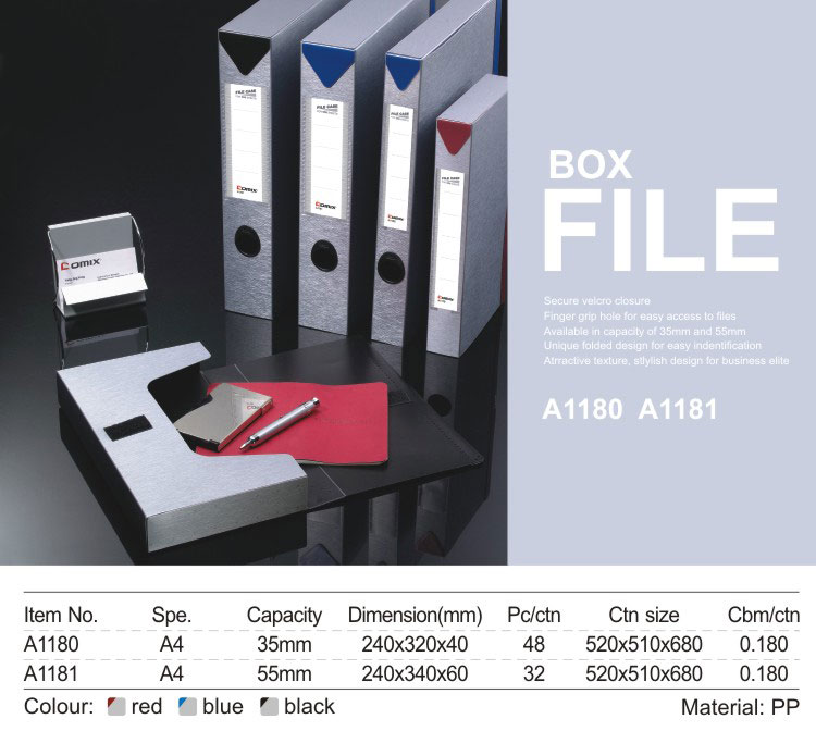 齐心外销 A1181 铂睿档案盒 55MM PP A4 配