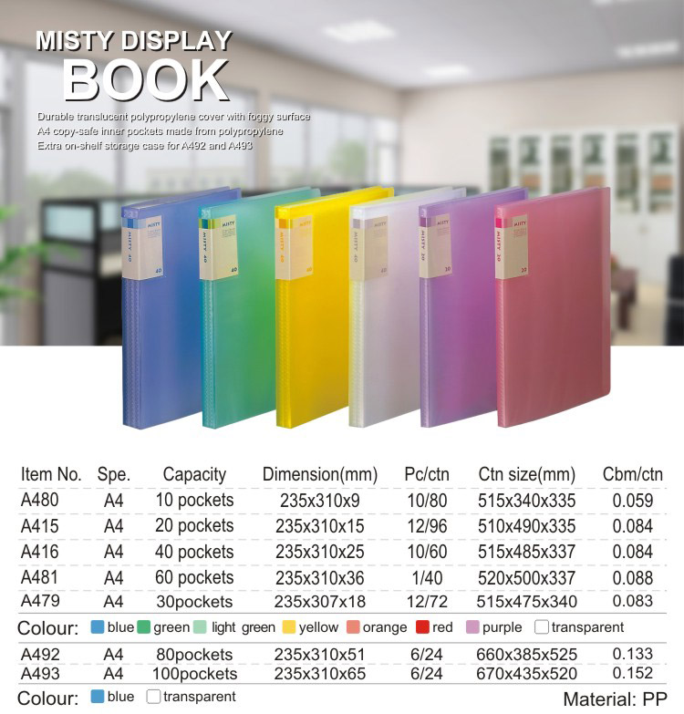 齐心外销 A415 MISTY透明资料册 20袋 A4 绿