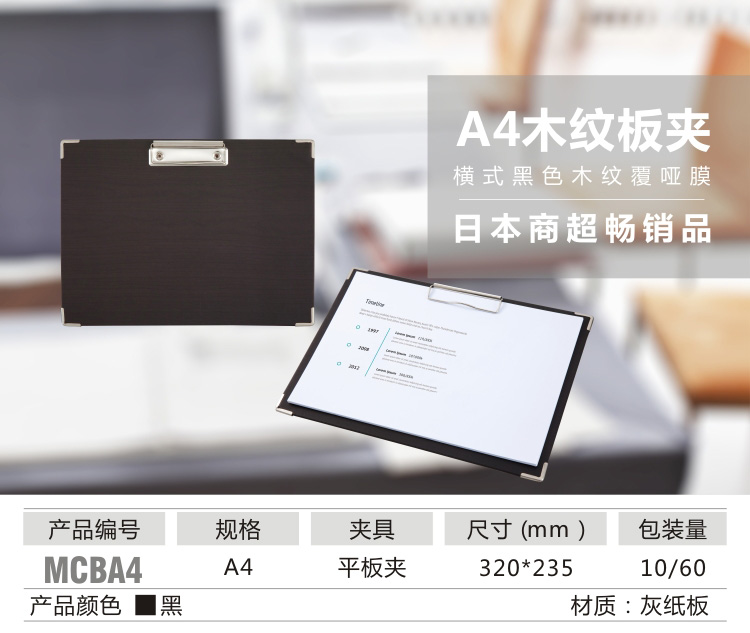 齐心外销 日本CAINZ MCBA4ED 木纹 板夹 A4 横式 黑